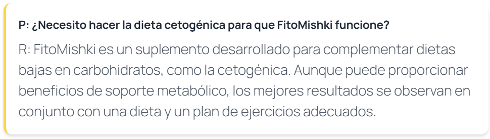 **DESCARGO DE RESPONSABILIDAD DE RESULTADOS:** FitoMishki es un suplemento dietético. La pérdida de peso requiere esfuerzo, dieta adecuada y ejercicio. Las